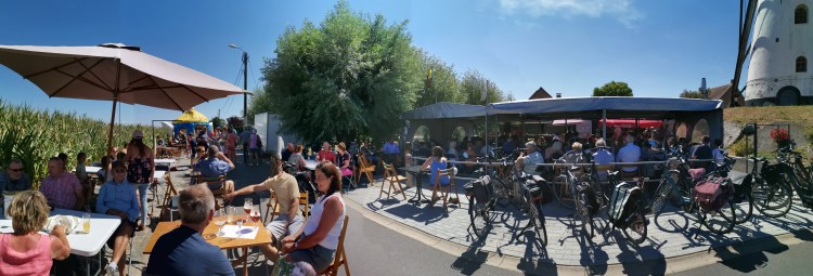 Zondag draaien de wieken weer op volle toeren. Ideaal om er te genieten van een koffie, een streekbiertje of een wijntje op ons terras!